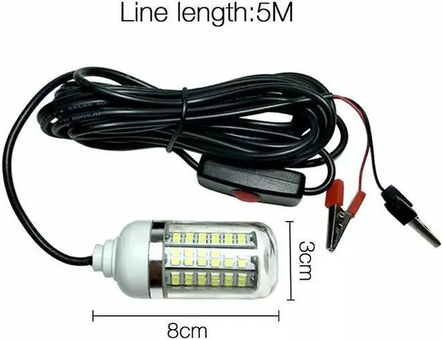 1. Green Light 12 Volt submersible deep drop underwater LED fishing lamp, IP 67, with battery clip and waterproof switch.