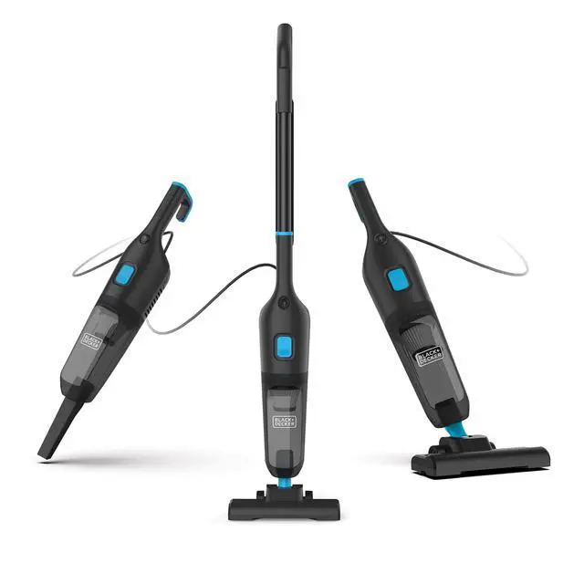 The Black & Decker 3-in-1 Stick Vacuum is a lightweight and versatile cleaning tool designed for everyday use. Its convertible design allows it to function as a traditional upright stick vacuum, a handheld unit for furniture or car interiors, and a wand for reaching tight or elevated spaces. Compact and easy to maneuver, it offers reliable suction for hard floors, area rugs, and quick cleanups. A simple dust cup system makes emptying debris hassle-free, while included attachments help tackle corners, stairs, and upholstery with ease. Perfect for convenient, whole-home cleaning without the bulk of a full-size vacuum.