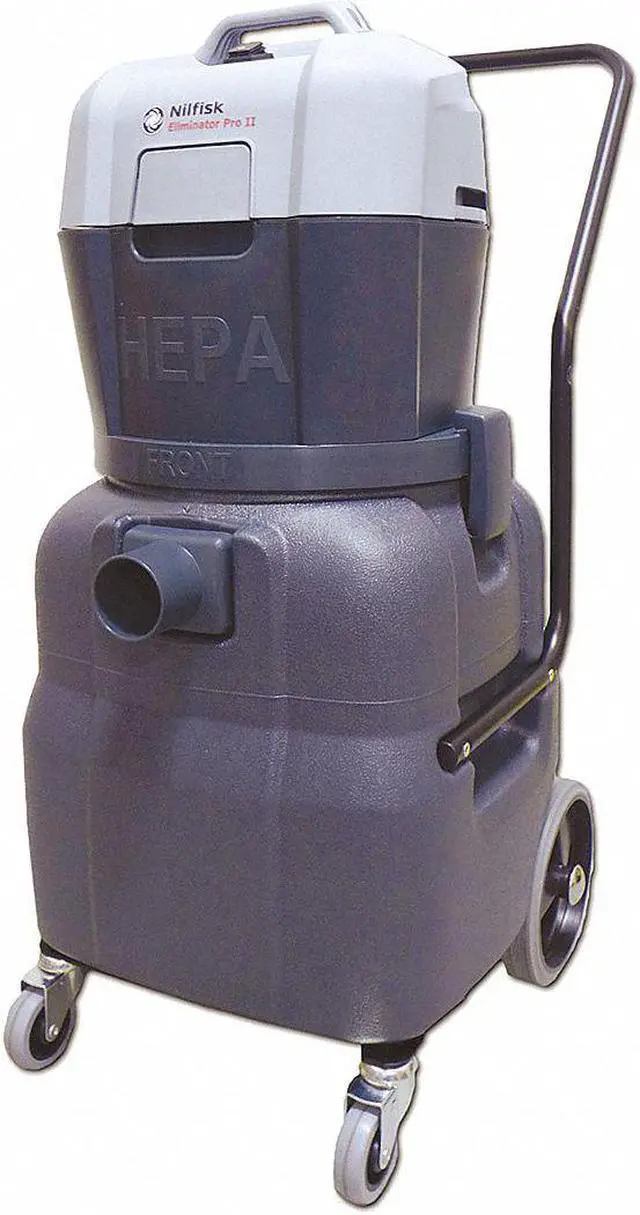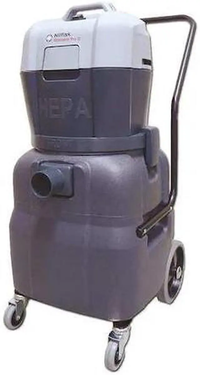 Shop Vacuum, Vacuum Power Source Corded, Filter Efficiency 63 Percent @. 3u, Vacuum Filtration Type HEPA, Vacuum Pickup Type Wet/Dry, Vacuum Air Flow 130 cfm, Static Pressure 89 in, Sound Level 67 dB, Tank Material Plastic, Tank Size 12 gal, Tank Dry Capacity 7 gal, Tank Wet Capacity 12 gal, Vacuum Collection Type Bag, Number of Motor Stages 2, Peak Horsepower 1 1/2 hp, Power 1, 000 W, Current 8.3 A, Frequency 60 Hz, Voltage 120V AC, Height 37 in, Length 17 in, Width 16 in, Weight 35 lb.