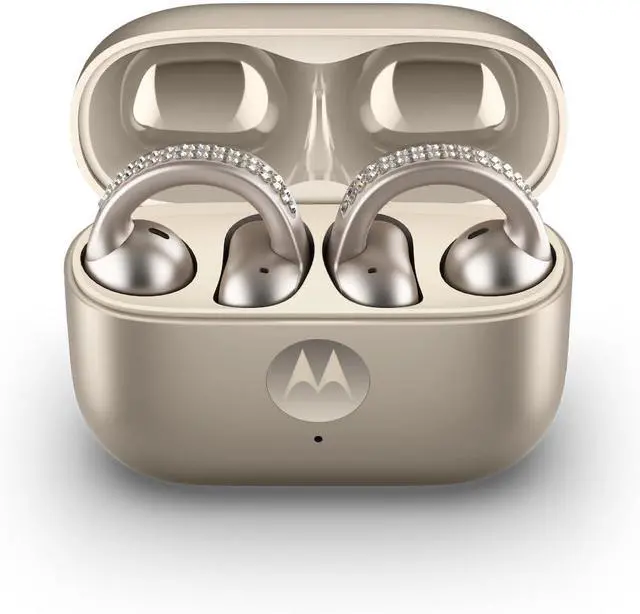 Stay in the moment with moto buds loop. Enjoy all-day comfort with an open-ear design, sleek style, and crystal-clear calls. Powered by Sound by Bose and built with a water-repellent design*****, moto buds loop keeps you connected, in control, and ready for anything.