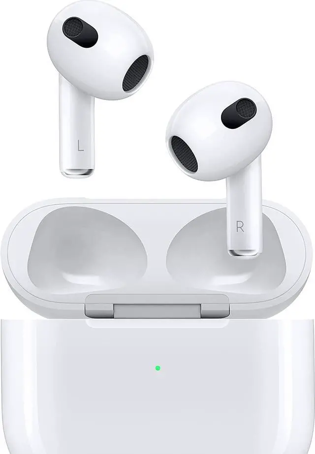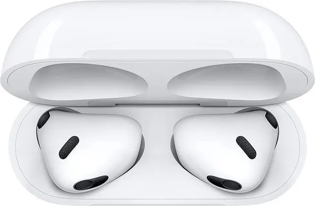 Apple's AirPods 3rd Gen feature a redesigned stem, spatial audio, IPX4 water resistance, MagSafe charging, and force-touch controls, offering up to 6 hours listening time (30 total with case), using the H1 chip,