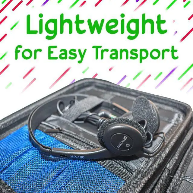 Take your music with you with these Maxell HP-100 Stereo Headphones! These lightweight, open-air type headphones are ideal for MP3, cD players and all portable stereo devices. You can expect these high quality Maxell ear buds to give you dynamic sound reproduction from all sources. Plus the slide headband adjusts for a comfortable fit.