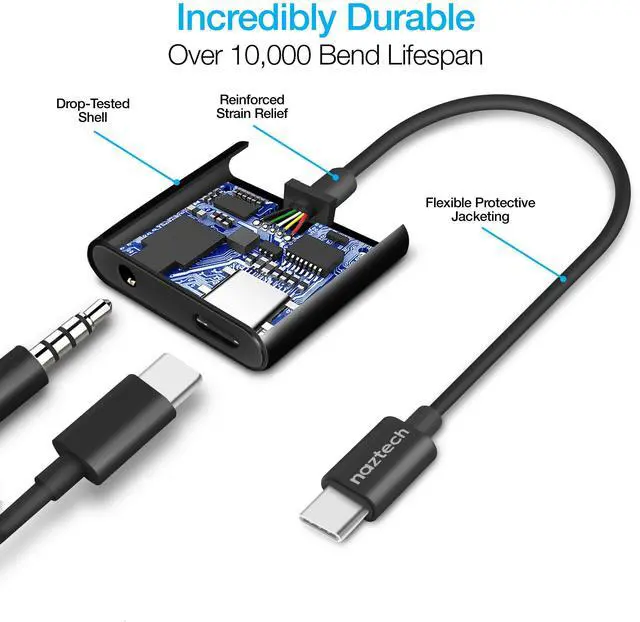 Listen OR Charge? How about Both! This ultra-compact adapter splits the USB-C port, allowing you to enjoy music while also charging your USB-C device! It features a USB-C connector on one end and a 3.5 mm auxiliary port and USB-C input port on the other. Get the best of both worlds: Audio + Charge.