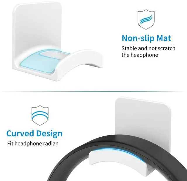 Curved Cradle & Soft Rubber: The Headphone Holder is designed with a curved surface to perfectly fit headset bands. The curved part features a rubber-like material that not only keeps the earphone band safe from scratching but also prevents the headset from dropping.