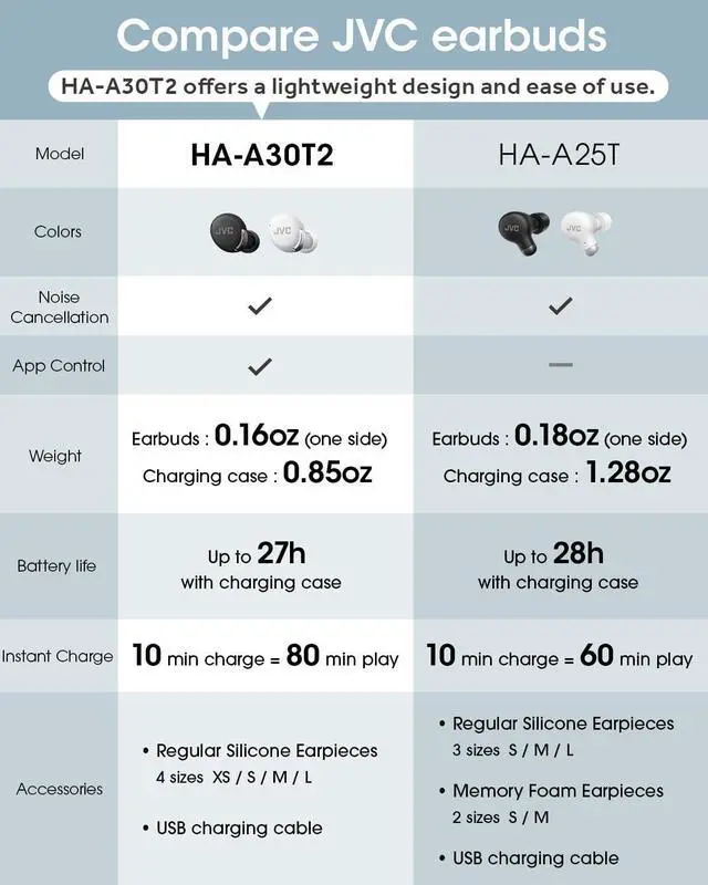 Experience seamless audio quality with the JVC Compact True Wireless Earbuds, designed to deliver an exceptional listening experience. Harnessing the power of Bluetooth 5.3, these earbuds ensure a reliable and stable connection, making them ideal for both music enthusiasts and podcast lovers. The noise-cancelling feature effectively blocks out ambient distractions, allowing for an immersive audio experience whether at work, during workouts, or on the go. Encased in a sleek, compact charging case, these earbuds offer up to 27 hours of playtime, ensuring that your auditory experience is never interrupted by a lack of power. These JVC wireless earbuds are perfectly suited for dynamic lifestyles. The IPX4-rated design guarantees robust water and sweat resistance, making them suitable companions for both heavy gym sessions and unexpected rain showers. Additionally, the low latency mode enhances your gaming and streaming experiences by minimizing audio delays, allowing for real-time enjoyment of digital content. As compatible earbuds for iPhone and Android devices alike, they offer a versatile audio solution that matches modern technological needs. The JVC Compact True Wireless Earbuds represent an ideal blend of convenience and advanced technology. With a focus on high-quality sound and optimal user comfort, they serve as an excellent choice for those who demand both performance and reliability from their earphones wireless Bluetooth devices. Integrate these earbuds into your daily routine, and elevate your everyday audio to new heights.