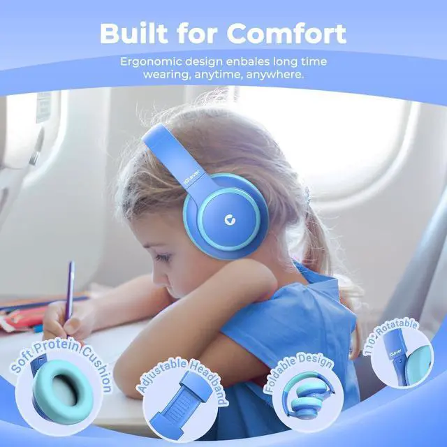 [Safe & Durable]: These Noise Cancelling Headphones for Kids feature an 80dBA volume limit and iClever Sound Refiner technology to protect children's hearing. Made with safe BPA-free materials, these Kids Wireless Headphones are built to withstand drops and daily impacts, lasting effortlessly for years to come.