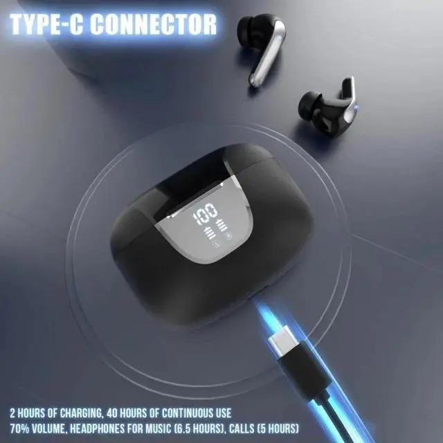LED Power Display With 40 Hours Playback: The digital LED power display on the outside of the case makes it easy to check the remaining power. The 300mAh charging case provides multiple full charges for the earbuds. Each single charge offers up to 6.5 hours of playtime, for a total of up to 40 hours of use. When using both earbuds simultaneously, total playtime is up to 20 hours.