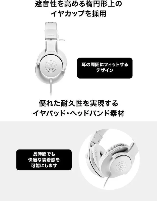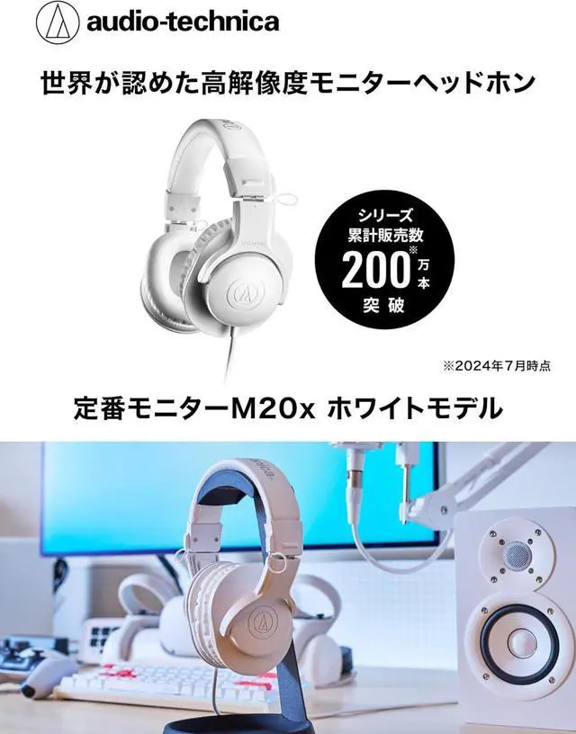 The ATH-M20x, a popular pair of headphones with over 2 million* sold worldwide, is an entry level model in the M-Series of professional monitor headphones. The M20x headphones have earned a reputation for their high sound quality and comfortable fit that can withstand the demands of professional workplaces. Now, the long-awaited white model, ATH-M20xWH, has been added to the lineup.