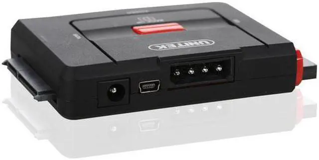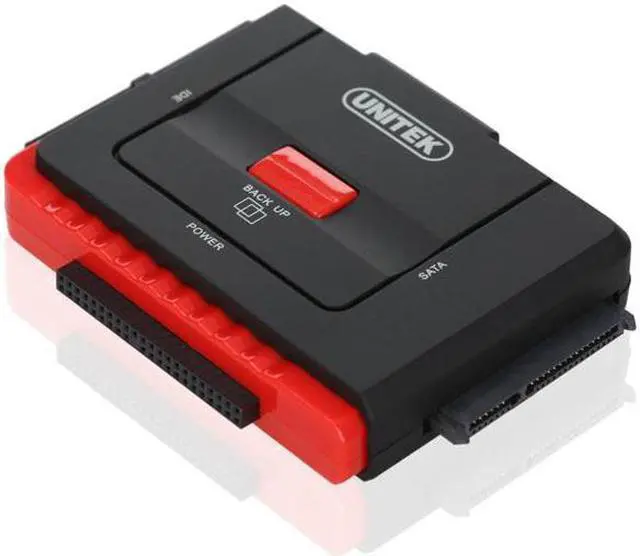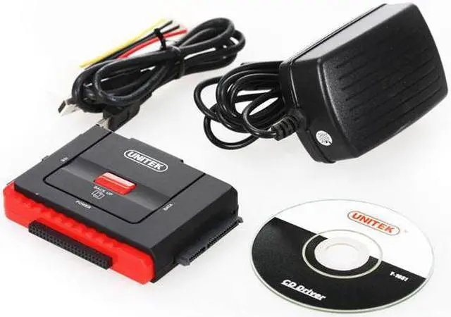 UNITEK Y-1031 USB to IDE / SATA Adapter BrandUNITEK ModelY-1031 Quantity1 ColorBlack + red Material PVC Interface TypeIDE / SATA ApplicationSupport external transfer of Hard disk, CD-ROM, DVD drive, DVD recorders, MO, ZIP, etc Supports SystemWindows 98SE / ME / 2000 / XP / Vista32/64bit/ Windows 7(32/64bit) OtherCan support 3 hard disk meanwhile; Support USB 2.0 to SATA, Max. transmission speed up to 480MB/s; Support USB 2.0 interface to connect PC, compliant with USB 1.1; Compliant with 2.5" / 3.5" SATA / SSD; Blu-ray LED hard disk read / Red light power indicator, can monitor data transmission state effectively; Plug and play, support hot swap; With OTB function Packing List1 x Adapter1 x 100~240V US plug power adapter (130cm) 1 x USB data cable (70cm) 1 x 4-Pin power cable (5cm) 1 x English software