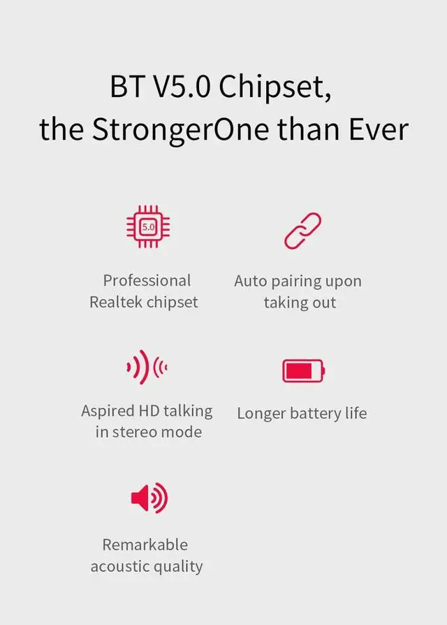 2. Bluetooth 5.0 Tech, Pairing with devices more stablely and quickly, power consumption is
