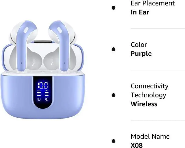 60H Playback and LED Power Display: Dual digital LED power display outside of the case is to show the power level for charging case and earbuds. When charging for the case, the LED light will start to flash from 1 to 100. When you put earbuds into the case, then earbuds will start to be charged. 470mAh battery capacity charging case can provide 6 times full charging for both earbuds, each earbud can last 5H on single charging. So, you can enjoy 60H music time in total via using in turn.