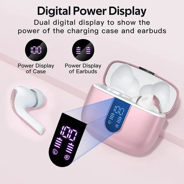 60H Playback and LED Power Display: Dual digital LED power display outside of the case is to show the power level for charging case and earbuds. When charging for the case, the LED light will start to flash from 1 to 100. When you put earbuds into the case, then earbuds will start to be charged. 470mAh battery capacity charging case can provide 6 times full charging for both earbuds, each earbud can last 5H on single charging. So, you can enjoy 60H music time in total via using in turn.