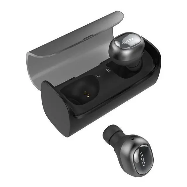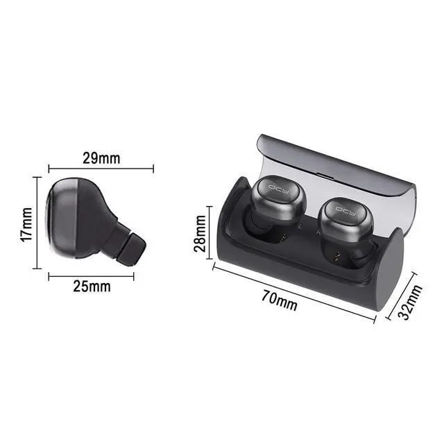 The Q29 earbuds are both wireless, but not shackled to each other via a physical wire - they’re two independent earpieces that can be used together (stereo) or separately (mono), depending on your needs. This Mini Bluetooth Headsets features super mini size, nearly invisible and easy to wear. Comes with an elegant charging box, it can automatically charge for your two earphones and the box is also a holder to store your earphones while not in using. Meanwhile, the two earphones can be used separately, but only the right one support phone call while using separately. Bluetooth V4.1 technology provides long transmission distance and clear talk/music sound quality. Three sizes of ear tips you will get to make sure comfortable wear experience. Enjoy wireless hands-free callings and music freely with the headset. Features: Now you can enjoy the Real True Wireless headset,which will set you free from the long cable and busy hands. Cable-free also means no more worries about the cord bouncing, tapping, or rubbing on something. It also means no more noise when you move, and no more cords stuck to your neck when you sweat. Q29 earbud come with mini and portable charging case. 220mAh battery provide extend 12 hours music and talking time. 45mAh battery for each earbud. Never worry about low battery when you are in the out side all day. High-Fidelity Sound and Stable Connectivity: Advance Bluetooth chipset provides super clear sound quality and ensures fast speed and stable Bluetooth signal. CVC 6.0 assures well noise cancellation effects. Bluetooth V4.1 which provides an incredible and stereo sound, Great noise canceling function allows you to just focus on your favorite music wherever you are, and clear phone calls are also supported with built-in microphone. DSP Intelligent Noise Cancelling Technology: Delivers dynamic, crystal clear sound to block ambient noise, gives your clear sound of phone talk and music play. Multi Connections: It can connect two Bluetooth-enabled devices at the same time and it supports all Bluetooth-enabled devices, like smartphone, tablet PC and others. Dual Modes to Use: Monaural and binaural modes supported, which means these two headsets can use separately and use simultaneously, very convenient. One-key Operation: Only with one key to achieve power on/off, answer/reject/transfer phone call, your best partner of safe driving or sports. Secure Fit and Comfort:ultra size, lightweight less than a coin, in-ear design fitting close and soft with ear canal-no worry about falling out of your ear; with different sized sweat-proof earcaps create a personalized and secure fit every time. Specifications: Bluetooth version: V4.1. Bluetooth profile: HFP/HSP/A2DP/AVRCP. Battery type: Li-polymer. Battery capacity: 3.7V 45mAh. Talking time: 2 or 3hrs. Stand-by time: approx. 50hrs. Input parameter: 5V 250mA. Operation range: 10m. Size: 25.3 x 17.3 x 29mm. Weight: 5.3g. Color: Dark Grey. Package Contents: Bluetooth Headsets (Left and Right). 220 mAH Charging Case. Ear Tips (S/L). Micro USB charging cable. Operating instructions.