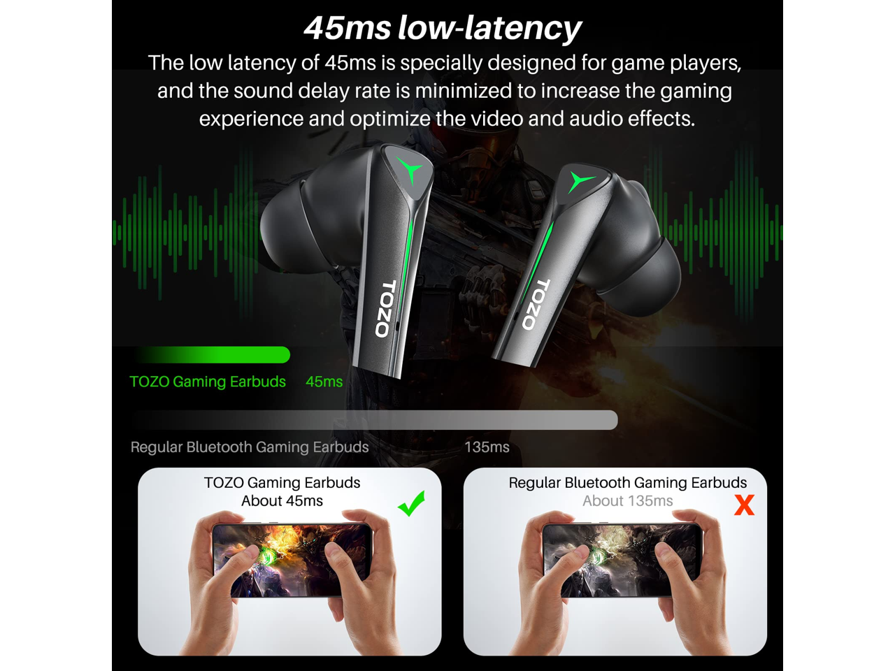 - 45ms Ultal Low Latency: G1 wireless earbuds are built to provide the ultimate mobile gaming audio experience with an ultra-low 45ms latency. Designed for gaming adventures, offers ideal gaming audio so you never miss any game sound effects.Get ready for an exceptional competitive gaming experience through quick sound effect audio.
