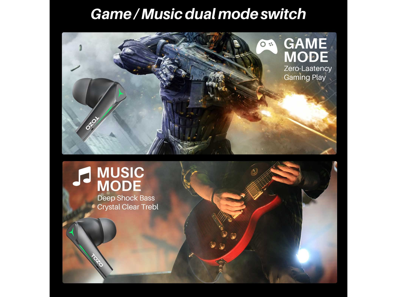 TOZO G1 Wireless Earbuds Bluetooth in-Ear Gaming Headphones with Microphone High Sensitivity Headset with Game/Music Mode Breathing Light and 45ms Ultra Low-Latency Specially Designed for Gaming,Black
