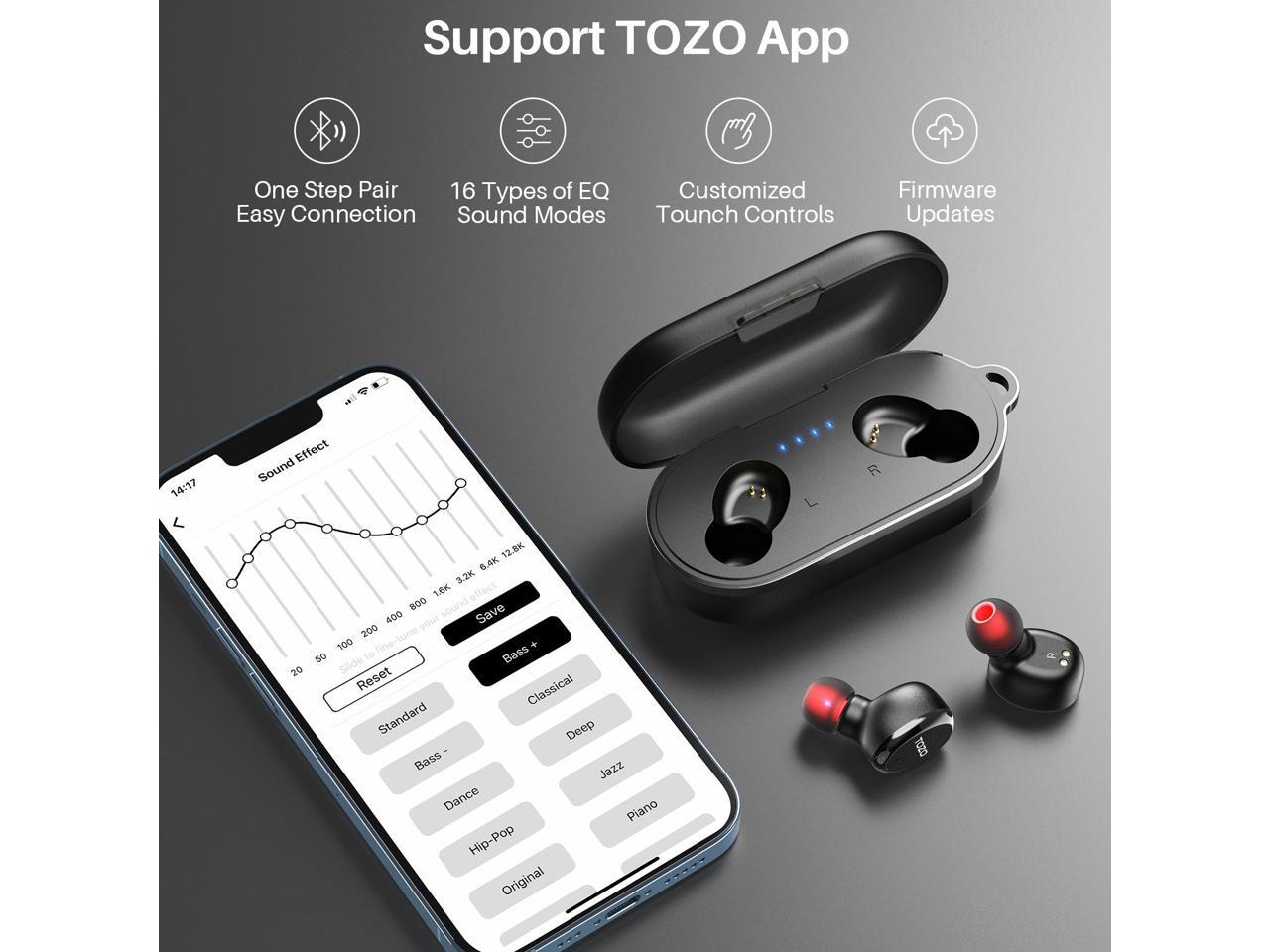 - Support TOZO APPThrough the connection with the TOZO app, the headset will be used more effectively and conveniently.TOZO APP offers EQ mode switch, as well as the ability to save noise reduction intensity customized adjustment and EQ curve settings. It can be used to customize Gesture operations and perform OTA software updates on the product. Where you can become acquainted clearly with the Quick Guide and Product FAQ.