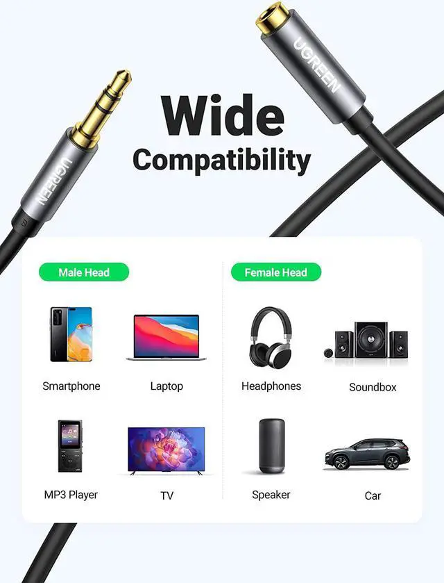 Your Aux Port: UGREEN 3.5 mm extension cable is a great solution to protect your 3.5 mm port from repeat plugging and unplugging. It is costly to buy a new device while it is so easy to get a aux extension cableAstonishing