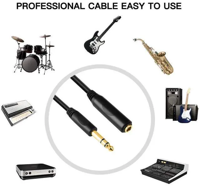 Connector: 6.35 mm 1/4 FemaleFully molded and shielded to prevent EMI/RFI interference. Gold plated connectors resist corrosion provide durability and improve the signal transmissionAllows you Connect headphones to audio devices such as amplifiers or AV receivers with 6.35 mm socketRubber strain relief for extended durabilityEasy to plug and connect;