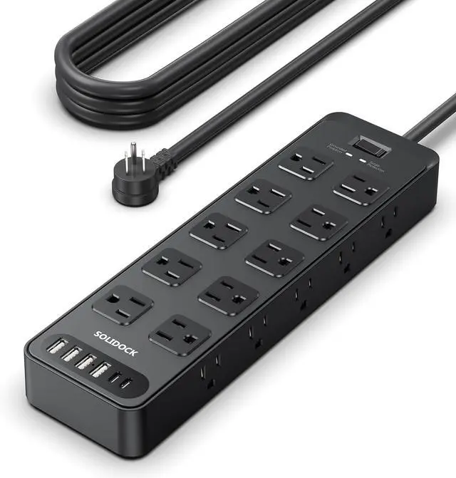 26 in 1 Power Strip-The Power Strip with 20AC widely outlets and 6 USB charging ports 6 feet Heavy Duty extension cord(1875W/15A) 2700 Joules Wide range voltage design can be used on 120v to 240v circuitSurge Protector Power Strip with 6 USB Charging Prots - The Surge Protector Power Strip have 6 USB Chagring Ports (4 USB A Prots & 2 USB C Prots) Total Max 18W 5V / 3.6A each USB A port features 5V/ 2.4A output. USB C charging port features 5V/3A MAX. Built- with smart technology detecting charging devices and deliver optimal charging speed automatically compatible with Kindle and most USB devices3 Side Design & Widely Space Outlets-The power strips with surge protection 3-side design and each AC outlets with 1.67 inches space in between larger than standard 1.5 -inch socket fit big adapters without blocking each other.