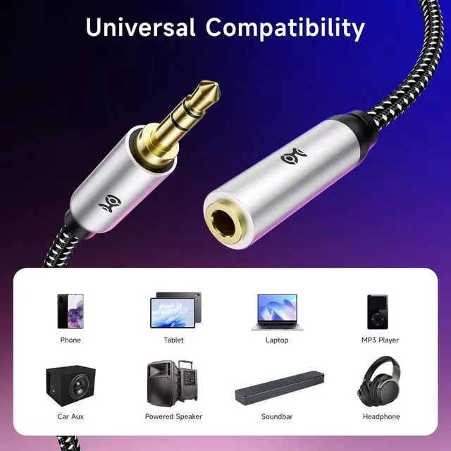 Audio Devices: Featuring a 3.5 mm male to female connector this headphone jack extender lets you connect headphones to your smartphone computer or other audio devices. The aux cord extender ensures a seamless extended connection for your audio needs.
