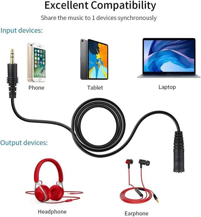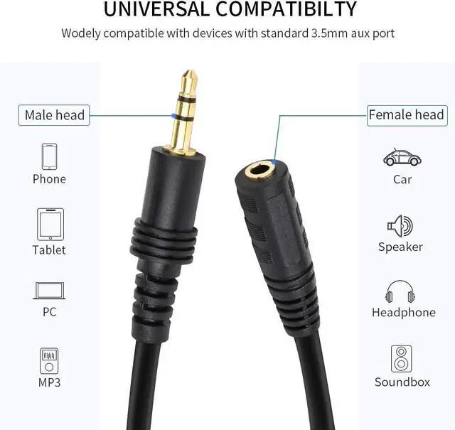 PROTECT YOUR AUX PORT: This extension audio cable is a great solution to protect your 3.5 mm aux port from repeat pluging and unpluging. It's costy to buy a new device while it's so easy to get a 3.5 mm auxiliary aux cable.