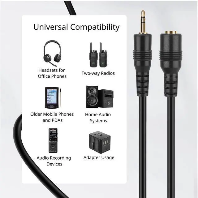 Universal Compatibility with most Audio components to deliver quality audio connectivity; Gold-plated molded connectors with strain relief ensure a solid high quality connection between the connected devicesSuperb Sound Quality High performance versatile cable delivers full range bass for audio equipment; Accurately transfer high bandwidth frequency quality detailed clean natural pure audio sound with realism and clarity jitter-free stereo format signalsConstructed with the highest standards and top quality parts; Balanced solid conductors for enhanced internal noise rejection and clearer deeper bass and eliminate strand-interaction distortion; Solid-core bass conductor optimizes low-frequency signal transfer for improved bass responsePerfect sound - no hiss & no static; Oxygen Free Copper Lines combined with a double shielding allow for a maximum audio quality; reduce distortion and signal loss; minimizes return loss so music dialogue and sound effects are always clear dramatic detailed in excellent signal quality 2.5 mm Male to male audio cable is made with a black PVC jacket for maximum durability and flexibility; Perfect for connecting portable audio devices to 2.5 mm headsets such as game console gaming headsets wireless phone microphone Xbox 330 Xbox one and some mp3 players etc