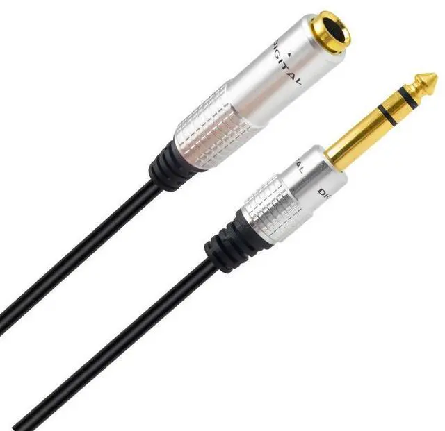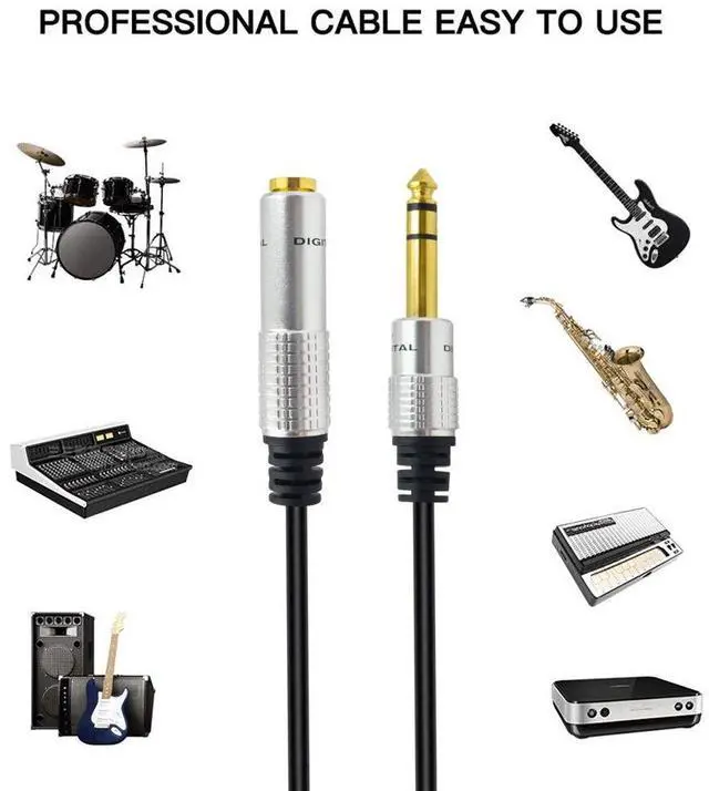 Extension Cable Compatible: it's can be used as a stereo extension cable for extending headphones guitars amplifiers musical instruments audio consoles mixer audio and more. This cable features a spiral shield for EMI rejection and durable Heavy Duty molded PVC connectors to ensure a lifetime of usage. Gold-plated provide superior signal transfer and sound reproduction. Allows you Connect headphones to audio devices such as amplifiers or AV receivers with 6.35 mm socket.