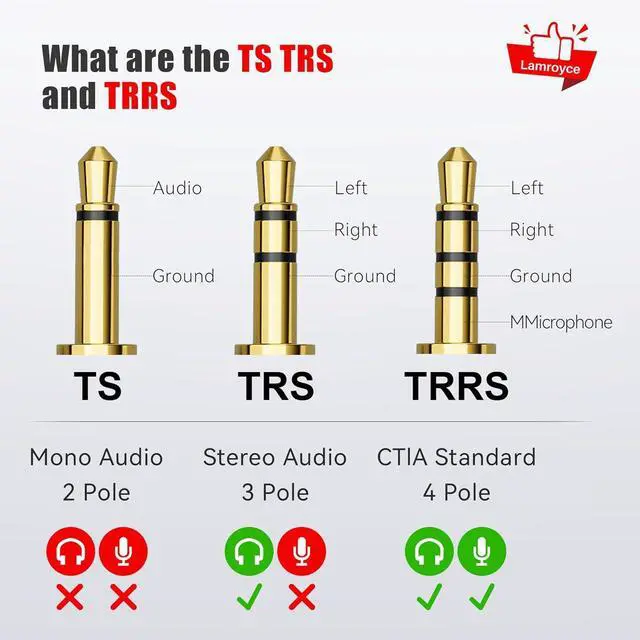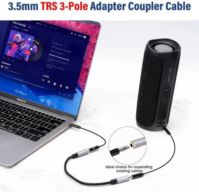 TRS stereo extension cable: Lamroyce 3.5 mm 1/8 Inch 3-Pole TRS stereo female to female coupler cable 0.6F eet has two 3.5 mm audio female port connectors providing a cost-effective way to connect two standard 3.5 mm TRS stereo headphone cables or extend the length of the extended standard audio cable allowing you to listen to music freely.