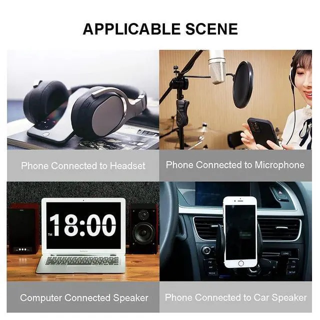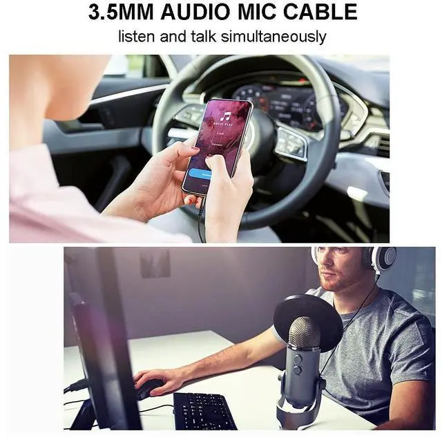 Audio Mic Cable: 3.5 mm to 3.5 mm Headphone Cable features dual 4-pole TRRS jacks to make microphone function available which enables you to use the microphone function of headsets or connect a 3.5 mm external microphone to a laptop PC smartphone. UNIVERSAL COMPATIBILITY 3.5 mm Male to Male Auxiliary Aux Stereo Professional HiFi Cable perfect for any 3.5 mm audio port device. Such ascar stereo iPod iPhone smartphones PS4 headset xbox one phone tablet Home theater speakers.