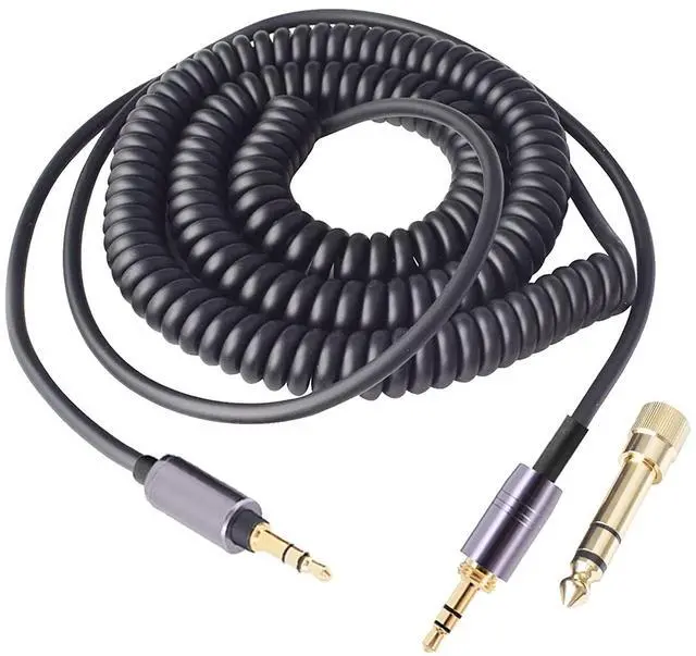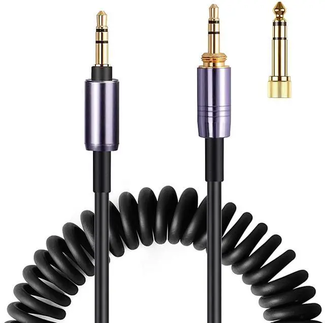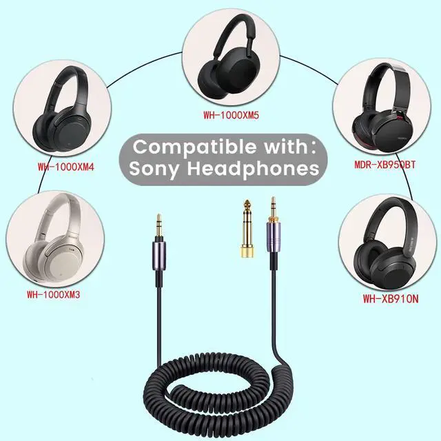 Coiled audio cable Compatible with Technica M50xBT M50xBT2 M50xBTPB M50xBT2MO SR50BT SR50BTBK SR50BTBW AR3BTBK ANC9 ANC7B SR6BTBK S700BT WS660BTBRD WS990BT Headphones. (Not For Audio Technica M40x M50x M60x M70x Wired Headsets) Compatible with Sony WH-1000XM5 WH-1000XM4 WH-1000XM3 WH-1000XM2 WH-XB910N WH-CH700N WH-CH710N WH-H900N MDR-XB950BT MDR-XB950N1 MDR-1000X MDR-1A MDR-100AAP MDR-1ABP MDR-1AM2 MDR-H600A MDR7520 MDR7520 Headsets 3.5 mm (1/8) 3 poles TRS male plug to 3.5 mm (1/8) 3 poles TRS plug with 6.35 mm (1/4) adapter. Protruded design makes plug-in steady. Pure copper gold-plated plug ensures stereo sound supports 7.1 surround atmosphere In normal 1.3 m( 4.1 ft) fully stretched can be extended to 4.5 m (14ft).