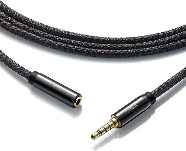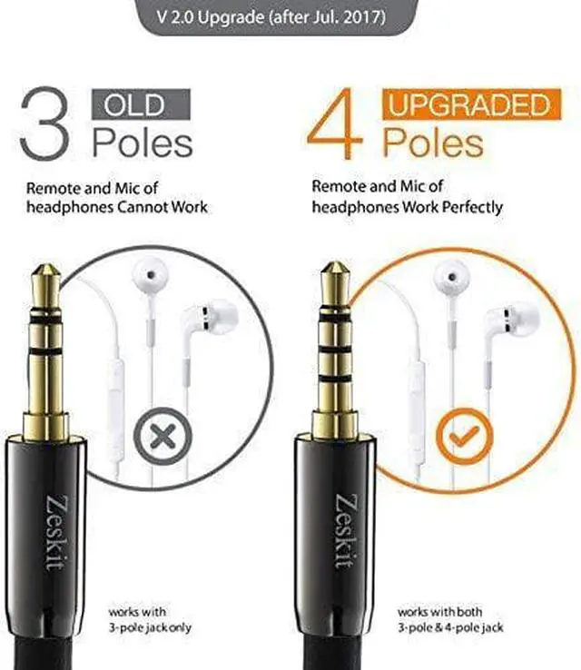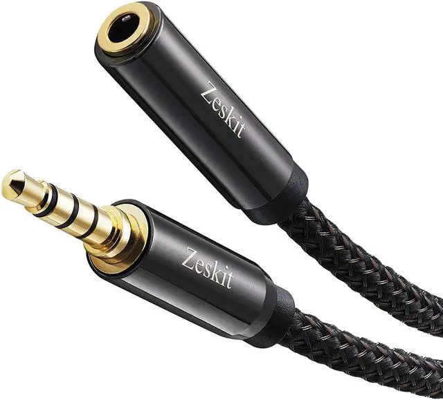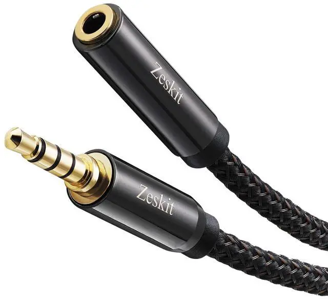 24K gold plated male connector with step design works without removing your phone/tablet case4-pole 3.5 mm jack compatible with both 3-pole jack and 4-pole jack devices. Works with sound and mic channelsFull-length double shielded casing of woven nylon for a durable flexible cable that won't tangleExceptional Zeskit craftsmanship and style