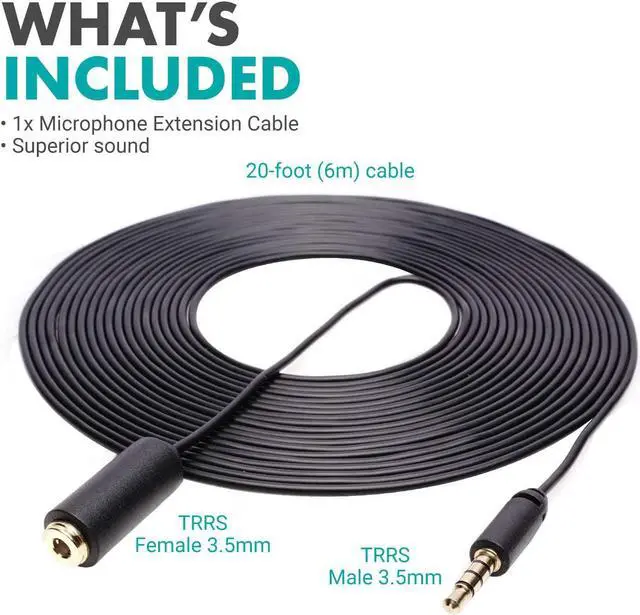 FOOT CABLE: Extend the reach between your TRRS (4-part 3.5 mm connector) mic and smartphone by 2 feetUNIVERSAL