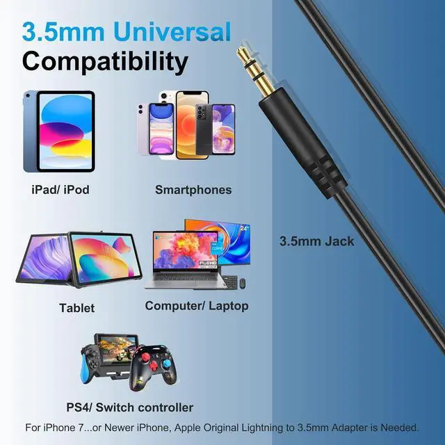2.5 mm Jack CompatibilityThis 2.5 mm audio cable is ONLY compatible with Bose 700 (NC700) Quietcomfort QC25 QC35 QC35II QC45 On-Ear 2 OE2 OE2i SoundLink SoundLinkII SoundTrue JBL Tune 710BT 660NC 760NC Live 460NC 650BTNC and AKG Y40 N700NC and more other headsets with 2.5MM jack port listed in the description. 3.5 mm Jack Wide CompatibilityThe cable works with devices with standard 3.5 mm jack such as iPhone most smart phones and Computer Laptop PC Mac iPad iPod Tablet PS4/PS5/Xbox/Switch controller with single 3.5 mm audio jack( For iPhone 7... or Newer iPhone Original Lightning to 3.5 mm Adapter is Needed; for Xbox Original Headset Adapter is also Needed).