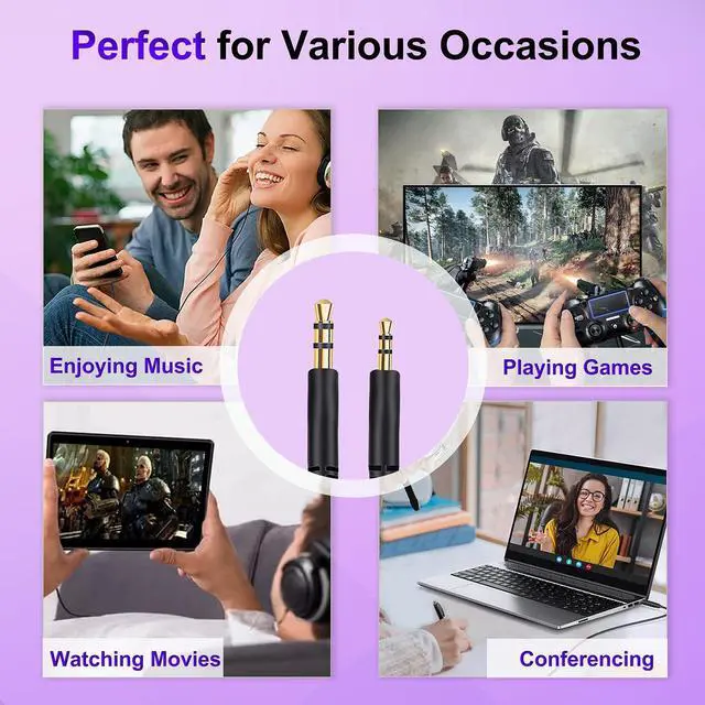 Premium Sound Quality & DurableMade of premium TPE materials the upgraded Bose replacement headphone cable features a 24K gold-plated straight plug for maximum conductivity and durability. Superior-grade oxygen-free copper (OFC) wires resist electromagnetic or radio frequency interference (EMI or RFI) bringing you a high-fidelity audio experience. Perfect Length & Easy to UseThis 2.5 mm to 3.5 mm auxiliary audio straight cable Length 4.99 ft/152cm not easy to knot and easy to carry. Plug and play fit perfectly with your Bose Quietcomfort and JBL series headphones enjoy your wonderful music journey.