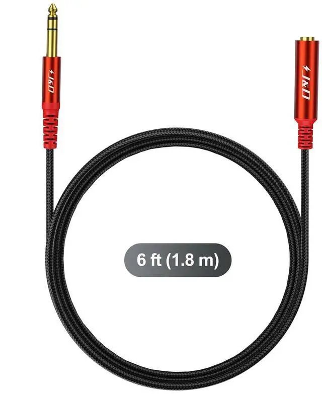 Material: premium construction of the 1/4 extension cable features a braided cable jacket gold plated connectors and 4N oxygen free copper; male to female headphone jack audio cord is designed for frequent useProtect your 6.35 mm device: this TRS 6.35 mm male to female extension cable is an excellent solution to the problem of shorter existing cables for extend guitar piano keyboard or amplifier with a headphone1-year coverage period for your peace of mind if received damaged please let us know and we will solve it promptly
