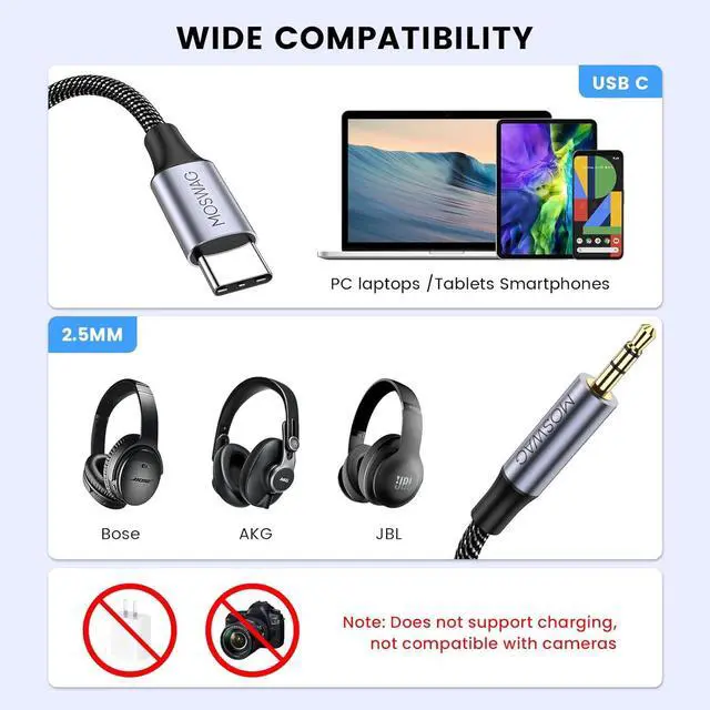 C Jack: MOSWAG USB C port to 2.5 mm cable is compatible with most