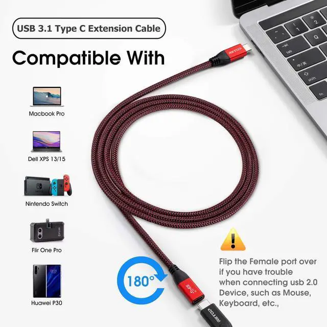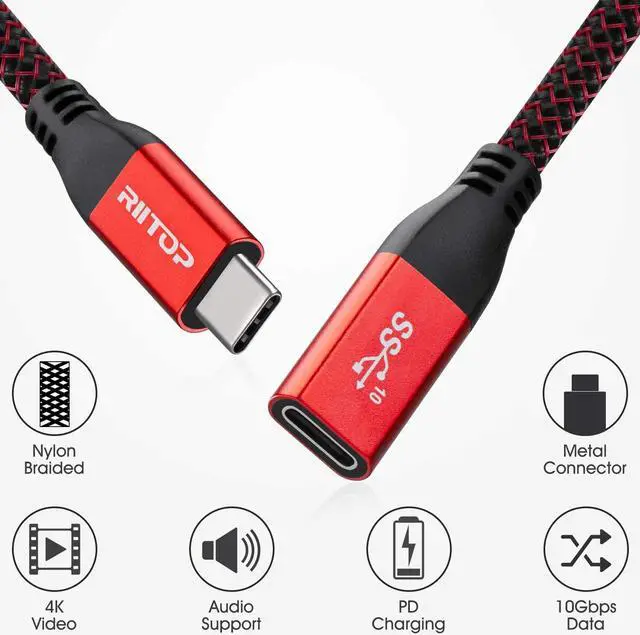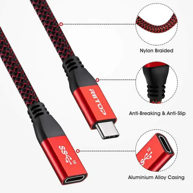 ?? RIITOP USB C Extension Cable is designed for extending USB C Port on USB C devices such as Nintendo Switch Type C Smartphone or Laptop. Supports Data Transfering and Charging?? [Update Version] RIITOP USB C Extension Cable V 2.0 is USB 3.1 Gen2 10Gbps Nylon Braided Cord with Aluminium-alloy Connector ensures it's durability and Reliability?? [Compatibility] USB C Extension Cable is Compatible with Thunderbolt 3 and most