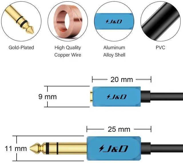 Composition: features a 3.5 mm 1/8 inch female connector on one end and a 6.35 mm 1/4 inch male connector on the otherEnhanced