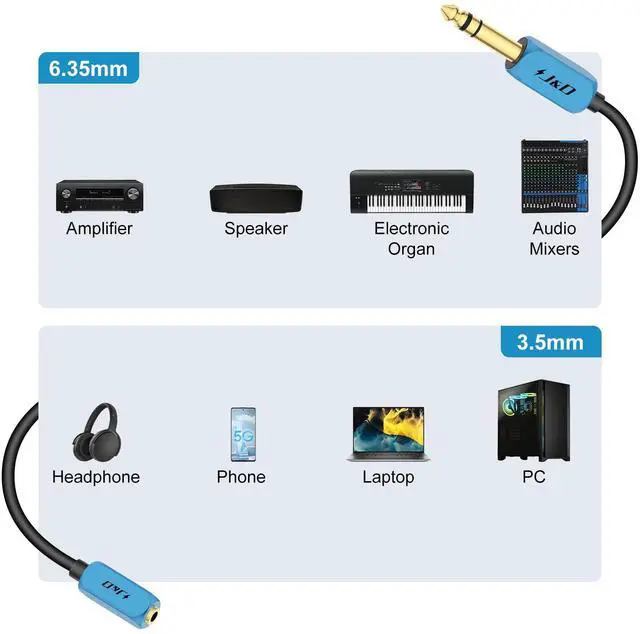 Seamless Connectivity: easily connect your smartphone laptop or PC with a 3.5 mm jack output to devices featuring 6.35 mm jack inputs like speakers and mixing desksSuperior