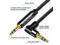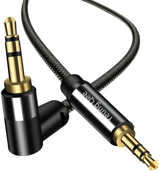 Right Angle Design: 90 Degree angle helps release strain solve the cable breakage issue 90 Degree right angle 3.5 mm male plug allows you to connect to tight spaces and hard to reach areas where a normal straight connector is unavailable 90 degree ends that keep the cable close to the equipment preventing the aux cable from being unplugged while moving items around my work space. Making a safer connection.