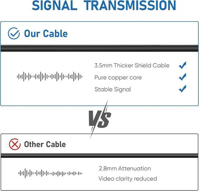 Premium Quality Material This 2.5 mm dash cam rear camera extension cable is meticulously crafted with a premium oxygen-free pure copper shield core which with a diameter of 3.5 mm thick wire (most of the original rear camera cables are 2.8 mm). Our 100% shielded backup camera extension cable is engineered to effectively block EMI/RFI interference ensuring efficient power transmission and minimized signal loss even over extended distances demonstrating unparalleled durability and reliabilitySilver-Plated Plug Enhanced Durability & Protection This reverse camera adapter extension cable featuring a silver-plated plug that resists oxidation and corrosion our mirror cam rear view camera extension cord ensures reliable static-free performance over time.