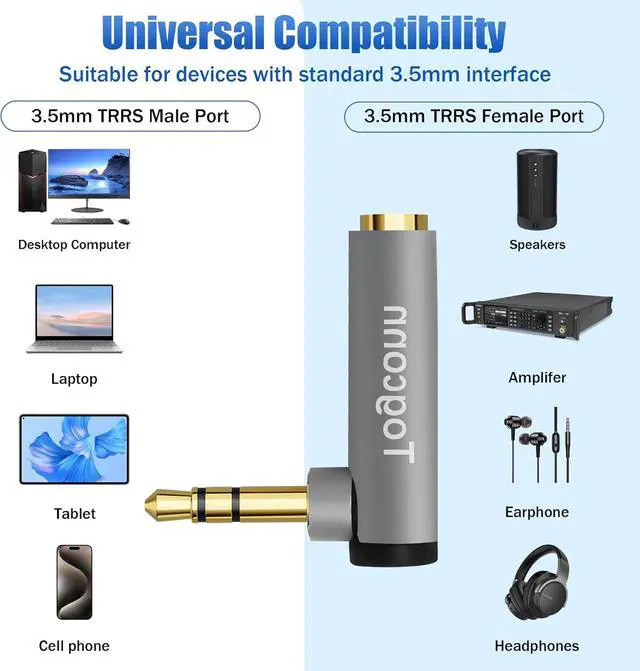 Right Angle 3.5mm 1/8 Audio Adapter 2-Pack 90 Degree 3.5mm 1/8 Inch TRS Male to Female Stereo Jack Plug AUX Gold-Plated Connector Compatible with Headset Tablets MP3 Players Speakers