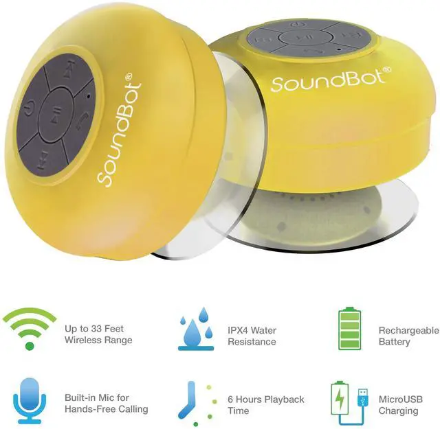 Waterproof Shower Speaker HD Water Resistant Bluetooth Handsfree Portable with Loud Clear Sounds 6+hrs of Playtime, Wireless Suction Cup Small Durable for Outdoors Travel Home (Yellow)