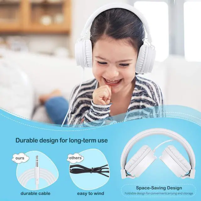 Designed with an adjustable headband, snug pads, and cushioned earpads without any sharp corners to provide a comfortable wearing experience without harm to kids' ears. Lightweight design makes it easy to carry.