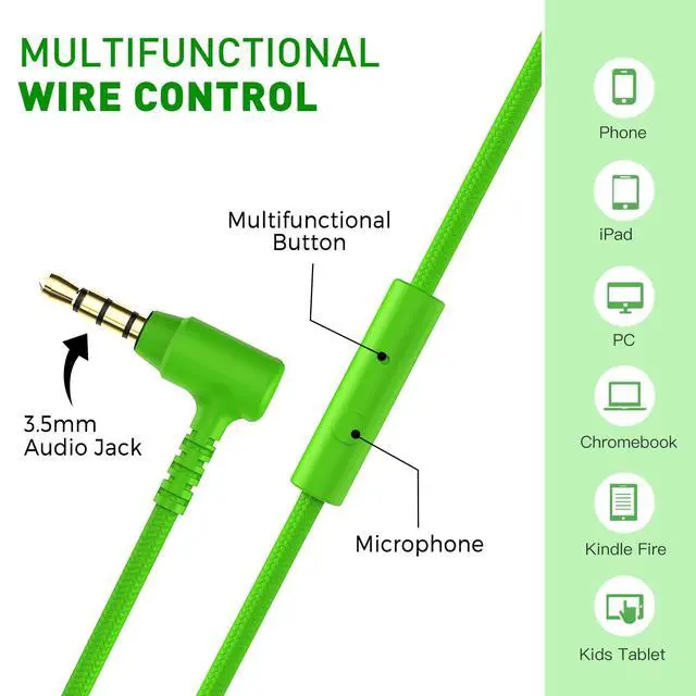 Durable & Adjustable >> These foldable headphones with a microphone feature a strong, elastic plastic shell and a no-tangle 4.9ft nylon woven cord for durability. They are suitable for kids and adults alike, making them an ideal choice for school, classroom, home, office, airport, airplane, and travel.