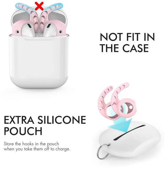 NOT FIT IN THE CHARGING CASE: Earbuds cannot be charged with the silicone ear hooks on.