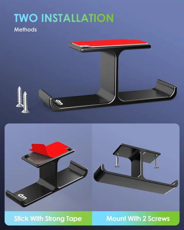 Dual Headphone Hooks-Maximize Desk Space This headphone holder for desk features a dual-hook design to hold two headsets at once. Compatible with most headbands up to 1.57" wide, perfect for gaming headsets, DJ headphones, and studio gear. Mount this under desk headphone hanger or table hook to free up surface space for keyboards, mice, and other computer desk accessories.