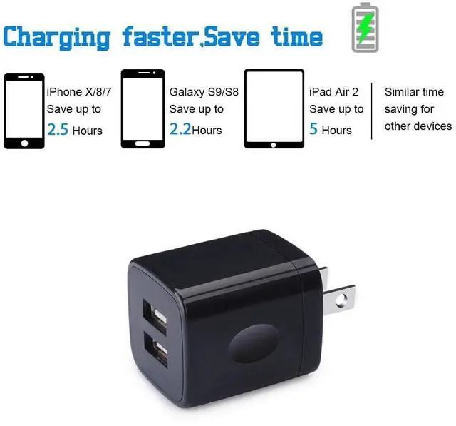 Dual Port Fast Charger: This dual USB wall charger block provides 2100mA of power for all cell phones and other electric devices to ensure charging speed up to 2.1AMPS, allowing you to charge two devices simultaneously.