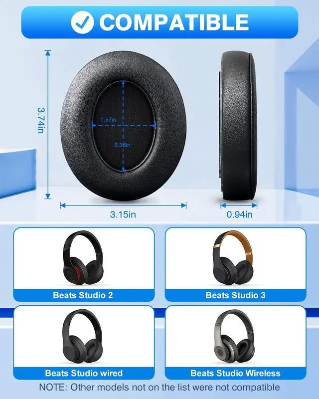 COMPATIBLE MODEL: Each cushion is rigorously tested to ensure we exceed expectations. The memory foam earpads are suitable for Beats Studio 2.0 Wired/Wireless B0500 / B0501 & Beats Studio 3.0 headphones (NOT for Beats SOLO headphones).