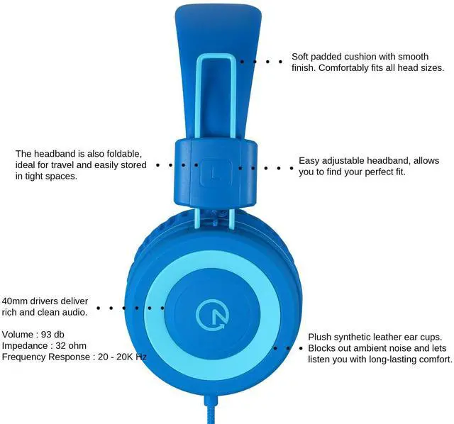 Designed for kids ages 3 to 16, these on-ear wired headphones are suitable for little or older kids, girls, boys, children, toddlers, home/online school, training, and long airplane or car rides. They feature padded soft cushions with a semi-gloss finish for a comfortable fit. The adjustable and flexible headband accommodates most head sizes, and the headphones can be folded in for compact storage. The 5 feet long durable nylon braided cable prevents tangling.